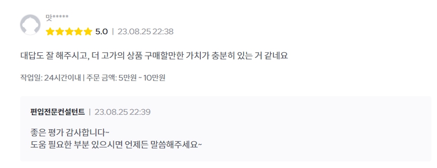돈을 주고 유료상담을 받고도 저에게 커피쿠폰을 보내고, 만점 후기를 주는 이유는 그 이상의 가치를 얻었기 때문일겁니다.
