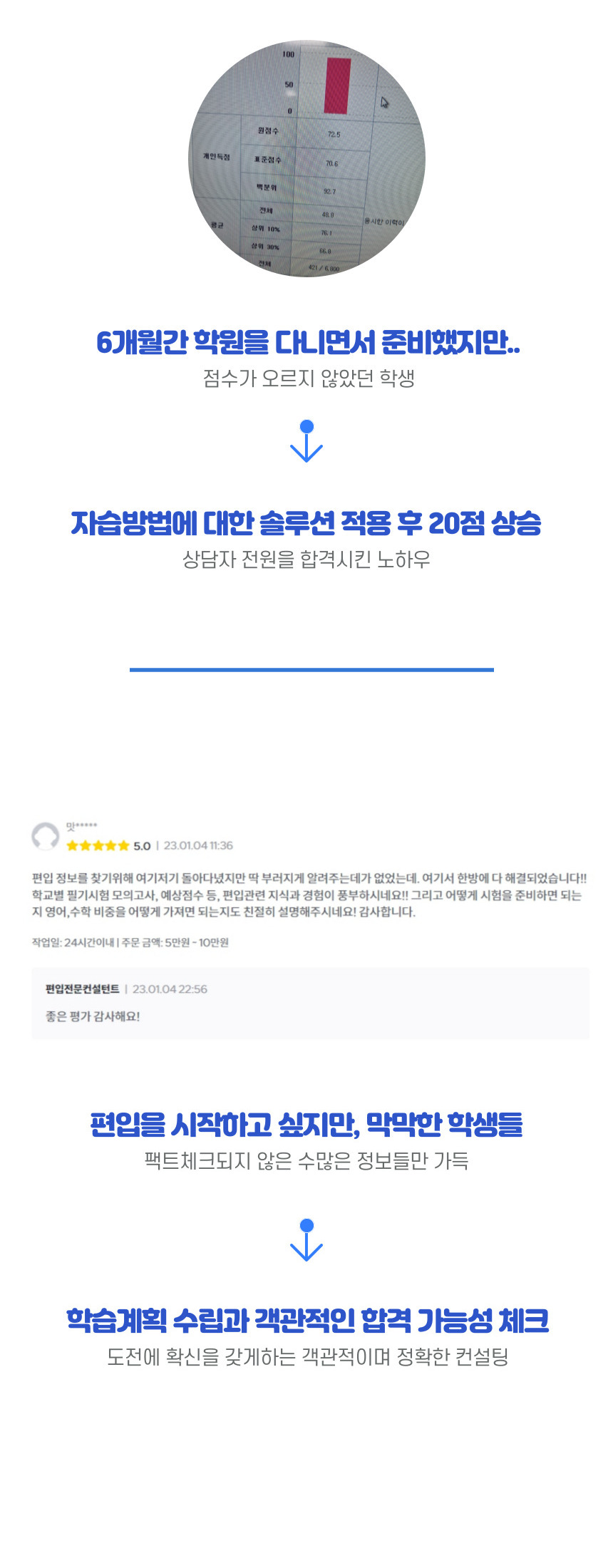 그리고 저와 상담을 진행한 분들은 그렇지 않은 분들과 비교해 분명 편입에 대한 결과가 완전히 바뀔 수 있음을 확신합니다.